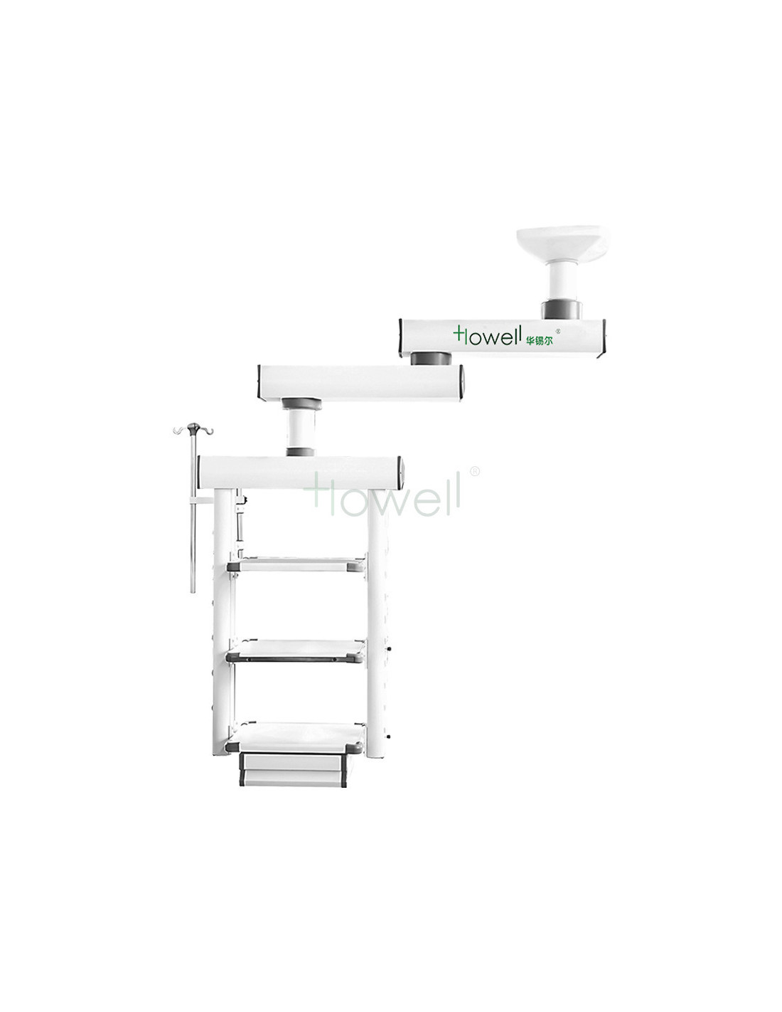 Howell HE-K-5 to sufitowe zawieszenie endoskopowe z podwójnym ramieniem przeznaczone do wyposażenia sali operacyjnej jako platforma nośna dla urządzeń endoskopowych i wież endoskopowych. Główne wyróżniki to możliwość konfiguracji zasięgu ramion i złączy gazów medycznych oraz rozbudowana platforma instrumentów z regulacją wysokości. Konstrukcja skupia się na ergonomii pracy zespołu endoskopowego, stabilnym montażu sufitowym i bezpiecznym prowadzeniu mediów oraz zasilania.