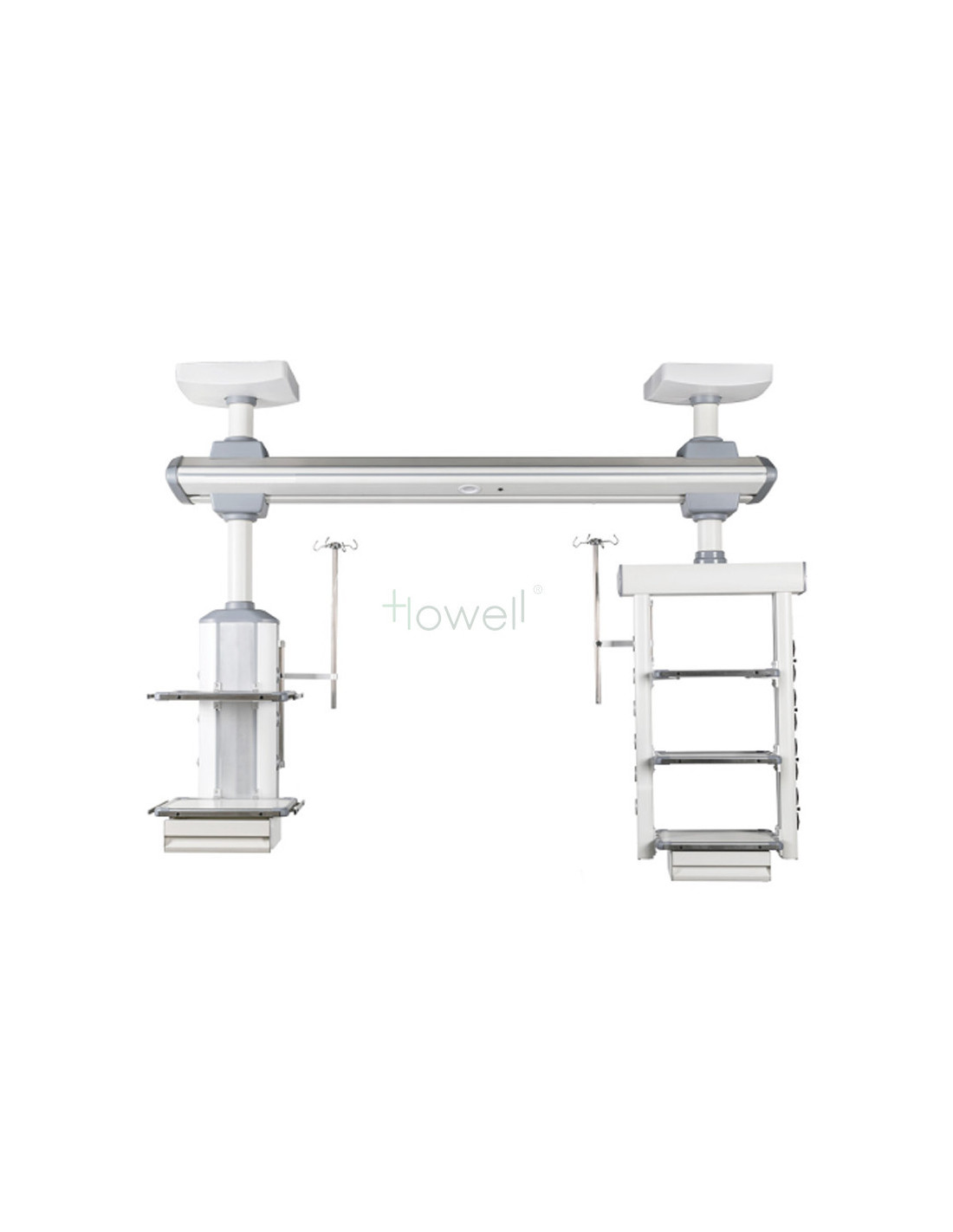 mainly by beams, dry and wet sections, which is characterized by a reasonable divided into dry and wet areas Two parts, the wet zone configuration flexible infusion rack, dry area equipped with adjustable instrument platform can be adjusted in the beam with gas terminals, power outlets, network interfaces. Medical device ICU Bridge pendant, wet and dry cantilever structure, the use of mechanical brake and damping structure anti-drift.