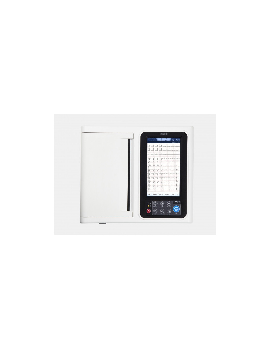 Zerone CZ-800 to 12‑kanałowy, cyfrowy elektrokardiograf przeznaczony do rutynowych badań spoczynkowych z dodatową funkcją spirometrii. Urządzenie łączy jednoczesne rejestrowanie 12 odprowadzeń z kolorowym, dotykowym wyświetlaczem 8" i dwoma wariantami drukowania (papier w rolce oraz wydruk Z‑fold). CZ-800 jest projektowany z myślą o pracowniach kardiologicznych i diagnostyce punktowej, gdzie kluczowe są szybkość badania, pewność automatycznej analizy oraz możliwość integracji z systemami informatycznymi.
