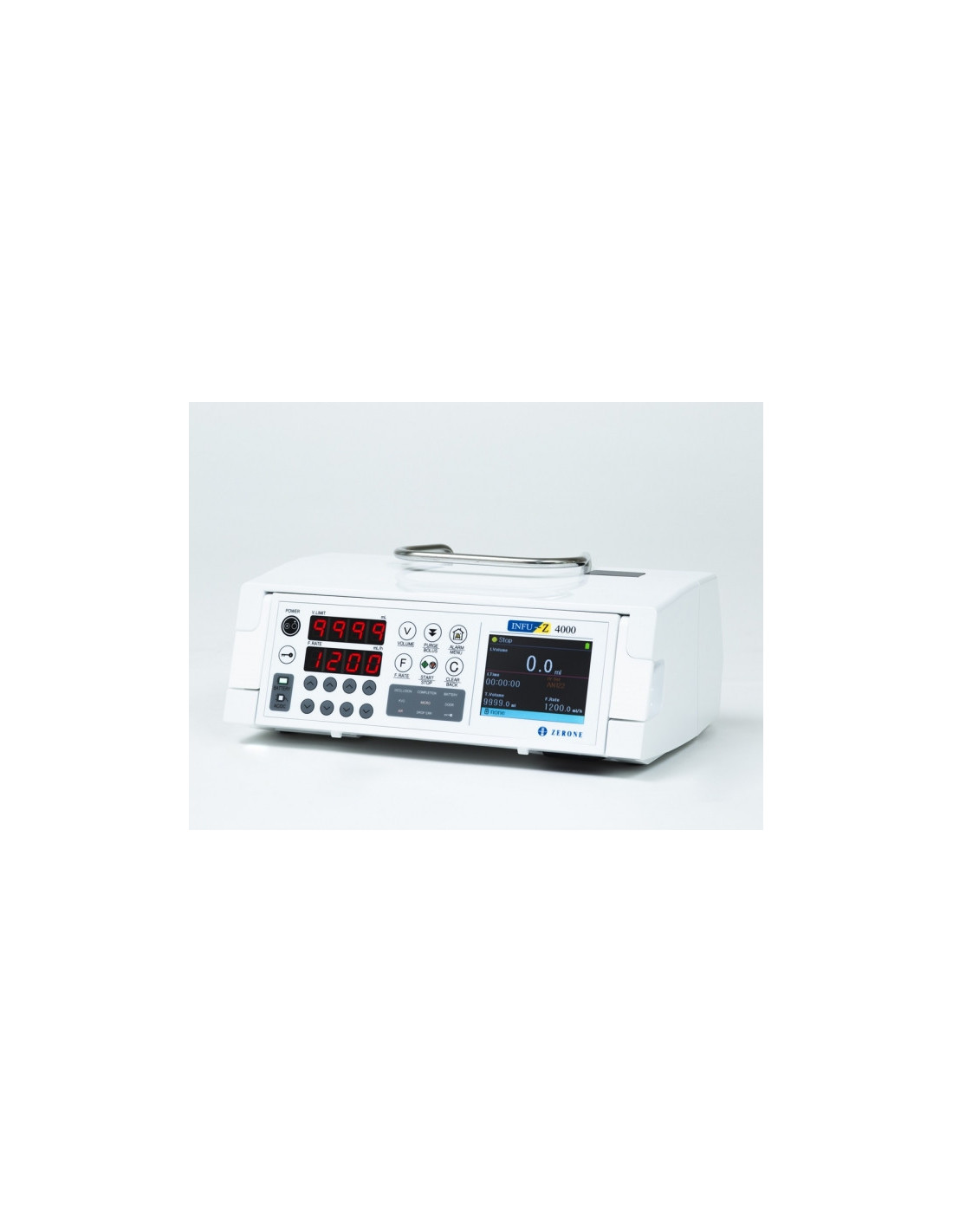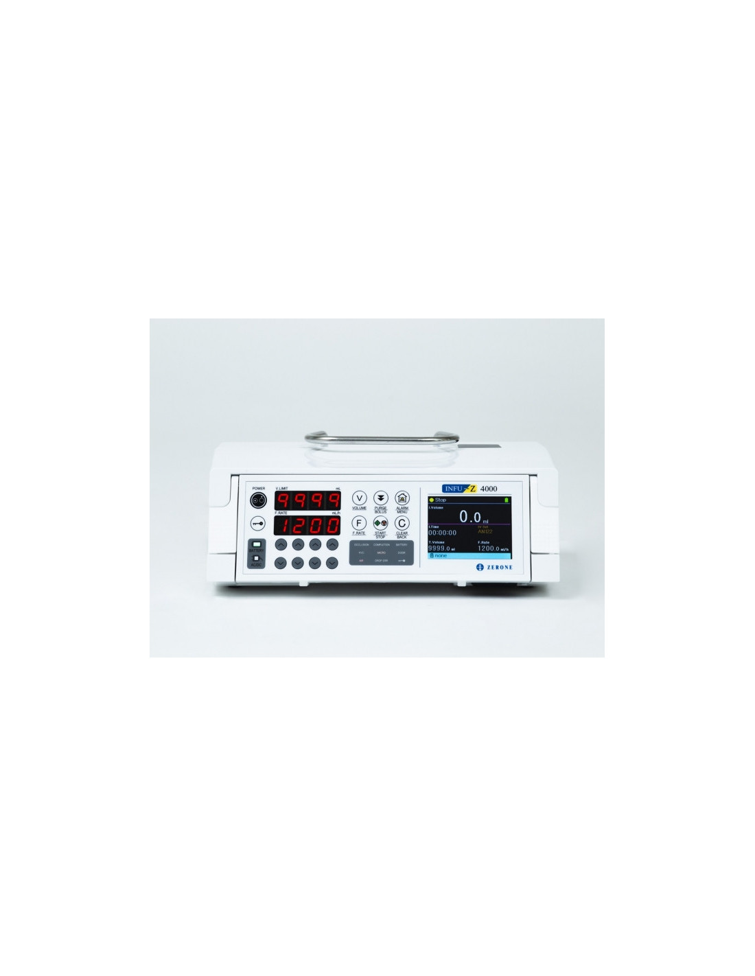 Zerone INFU-Z 4000 to jednonurtowa pompa infuzyjna objętościowa przeznaczona do terapii u dorosłych. Urządzenie łączy precyzyjne dawkowanie przy użyciu systemu perystaltycznego (finger system) z czytelnym wyświetlaczem TFT LCD i rozbudowanymi funkcjami bezpieczeństwa. Model przeznaczony jest do pracy stacjonarnej i transportowej w warunkach szpitalnych; jego kompaktowa konstrukcja i możliwość montażu na stacji dokującej ułatwiają konfigurację wielokanałową na salach zabiegowych i oddziałach intensywnej opieki.