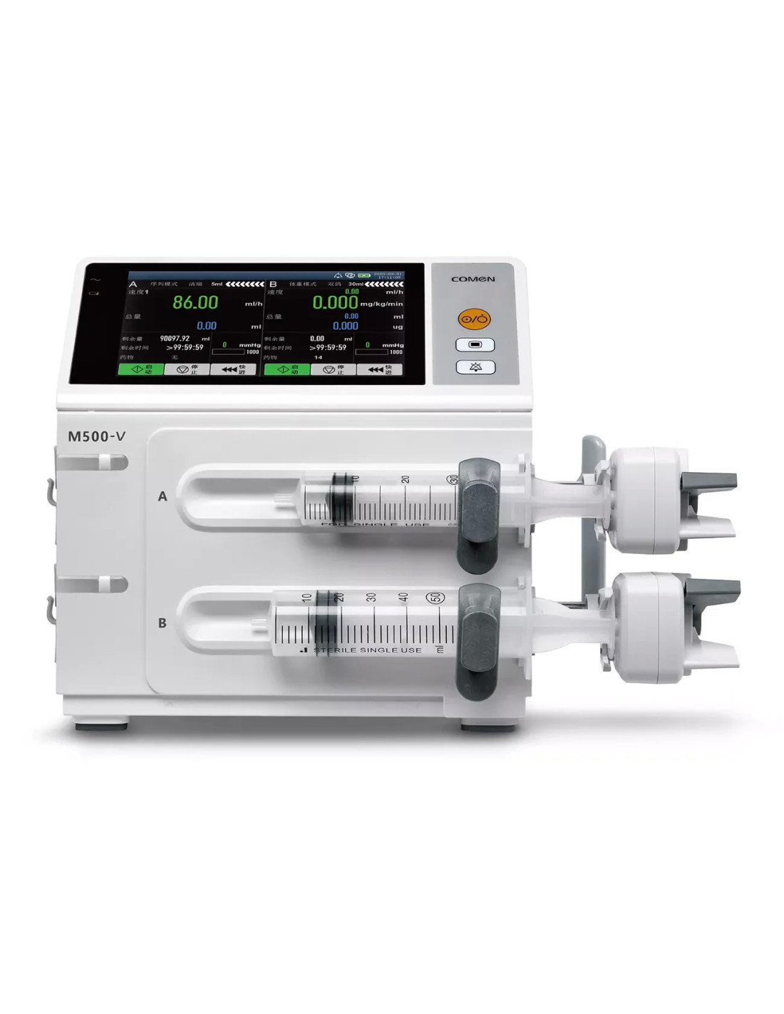 Comen M500-V to zaawansowana, dwukanałowa pompa strzykawkowa przeznaczona dla weterynarii, zaprojektowana z myślą o precyzyjnej infuzji u małych zwierząt. Urządzenie łączy mechanikę wysokiej klasy z systemami nadzoru wieloprocesorowego, co zwiększa bezpieczeństwo i powtarzalność dawek. Główne wyróżniki to obsługa dwóch strzykawek jednocześnie z jednoczesnym wyświetlaniem oraz rozbudowany system monitorowania ciśnienia i zapobiegania bolusom. M500-V jest dedykowany do zabiegów anestezjologicznych, procedur wymagających TIVA oraz wszystkich zastosowań, gdzie kluczowa jest precyzja niskich przepływów.