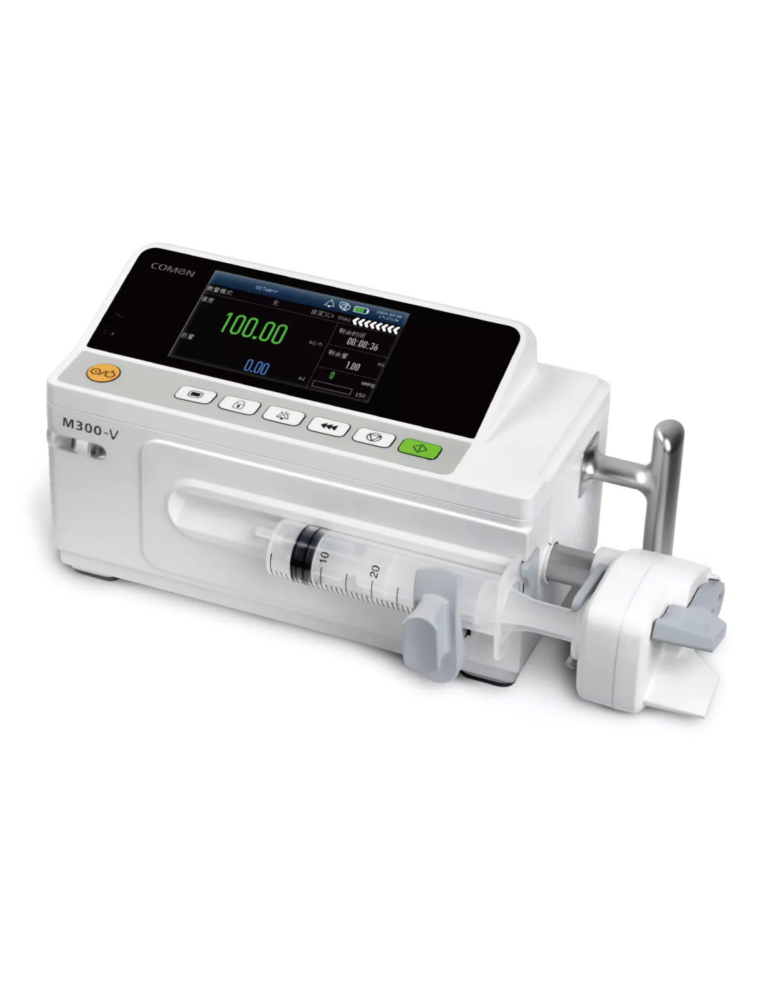 Comen M300-V to zaawansowana, jednokanałowa pompa strzykawkowa przeznaczona do zastosowań weterynaryjnych, zaprojektowana z myślą o precyzyjnym podawaniu leków zwłaszcza u małych zwierząt. Urządzenie łączy mechanikę napędową z inteligentnym nadzorem wieloprocesorowym, co przekłada się na stabilność dawkowania i szybkie wykrywanie nieprawidłowości. Ergonomiczny, dotykowy wyświetlacz z możliwością regulacji kąta widzenia oraz wizualizacja krzywej infuzji ułatwiają obserwację terapii w czasie rzeczywistym. M300-V adresuje kluczowe potrzeby kliniczne: precyzję przy niskich dawkach, bezpieczeństwo przeciwbolusowe oraz czytelność parametrów infuzji dla personelu weterynaryjnego.